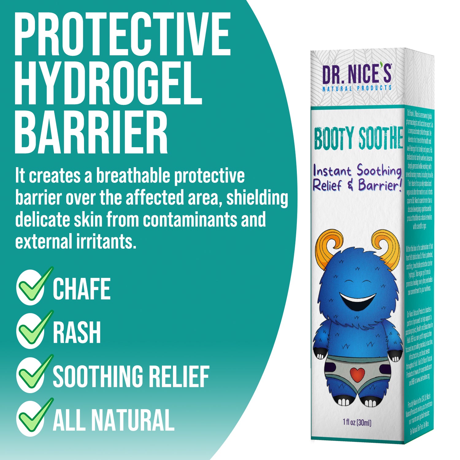 Description: Unlock the secret to instant comfort with Dr. Nice's Instant Booty Bliss. Formulated by pharmacists and made with all-natural, vegan ingredients, this hydrogel offers immediate relief for minor diaper rash and chafed skin.
