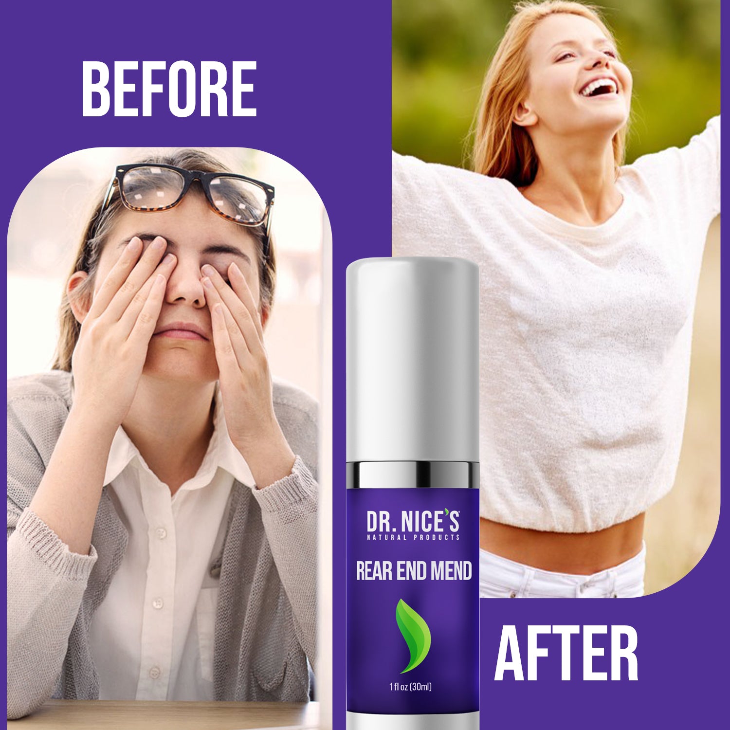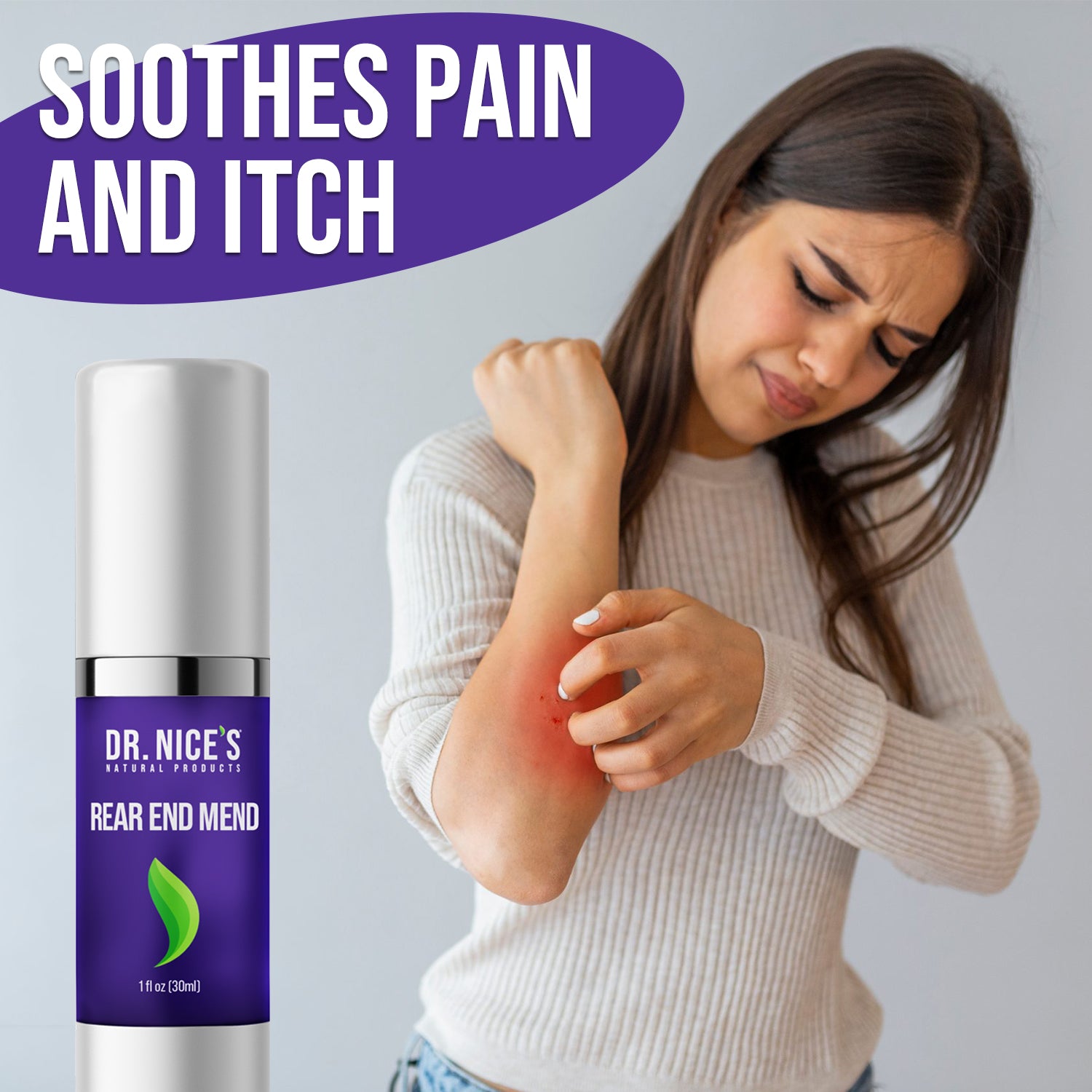 Dr. Nice’s Rear End Mend provides instant soothing relief to chap, chafe or irritated skin. For external use only- the hemorrhoid gel can soothe and protect your delicate skin and promote healing. The gel applies clear, leaving no chalky or sticky residue. Put your rear at ease with Rear End Mend.